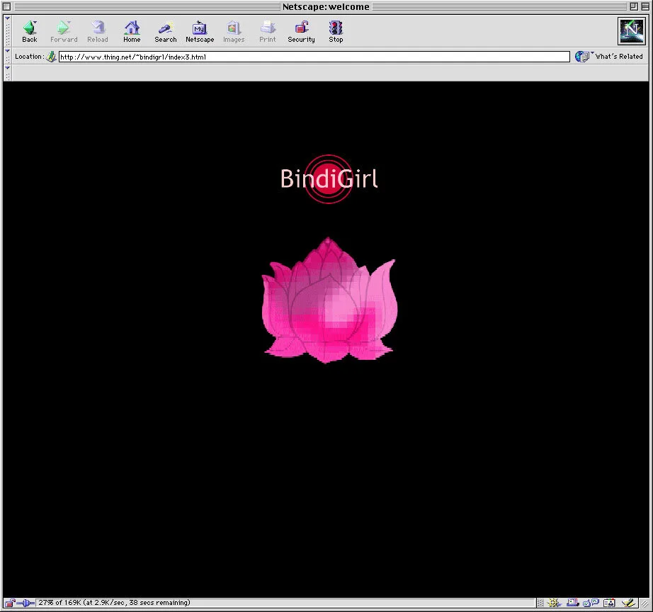 Bindigrl is a net art project that examines the boundaries between the sacred and profane from a postcolonial feminist perspective within a digital framework. It is a seminal net art project in the cyberfeminist movement that has been widely exhibited and written about in books on sex, race, gender and the digital. It was included in the exhibition, “Come As You Are: Art of the 1990’s” at Montclair Art Museum in 2015 and travelled nationally to numerous museums.